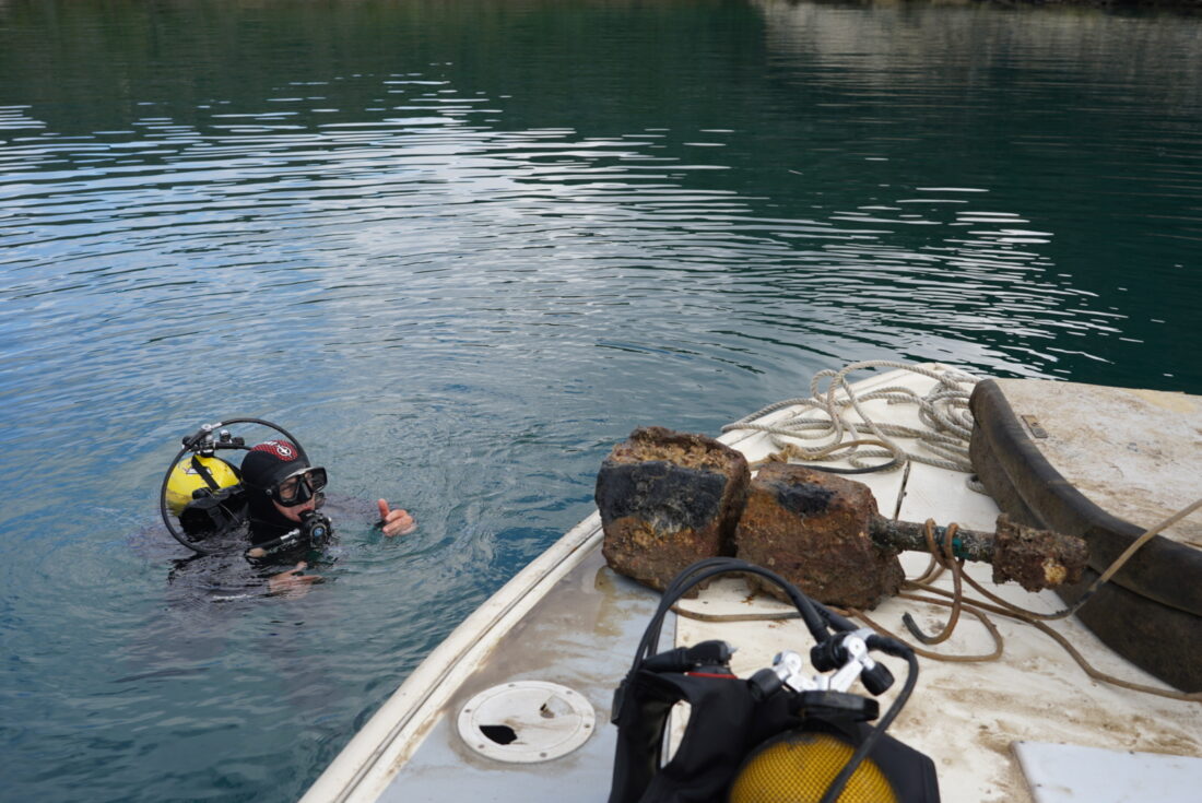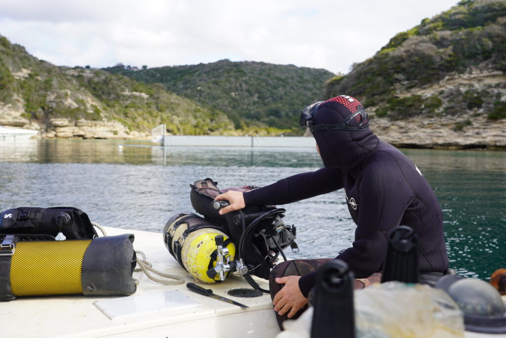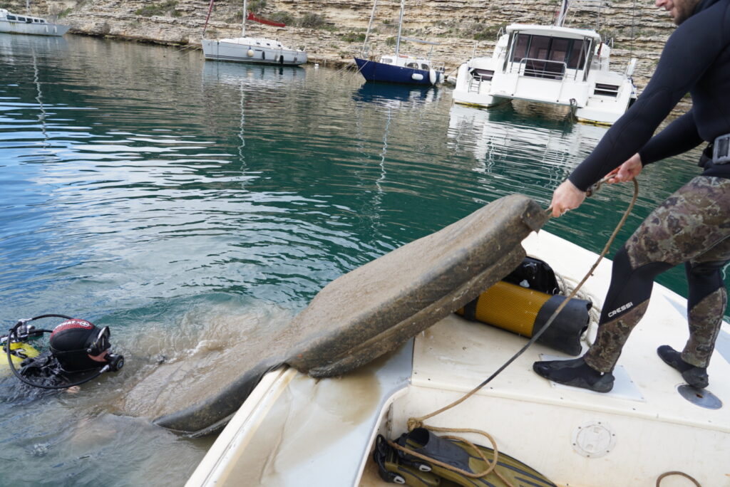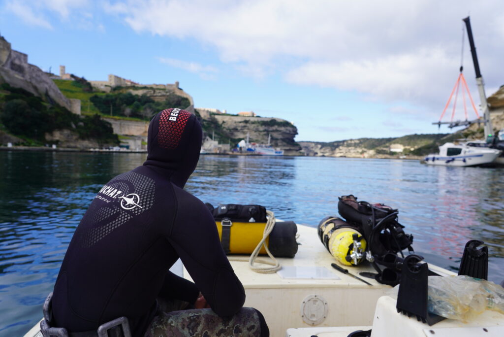 Maintenance sous-marine en cours dans l’anse de la Catena. Contrôle et nettoyage des fonds : un travail de précision mené par les plongeurs du port.